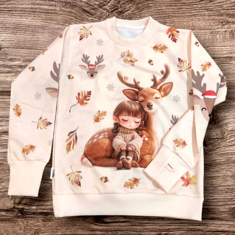 طراحی چاپی گوزن با جزئیات زیبا، این بلوز را خاص و دوستداشتنی کرده است. 🌟🦌