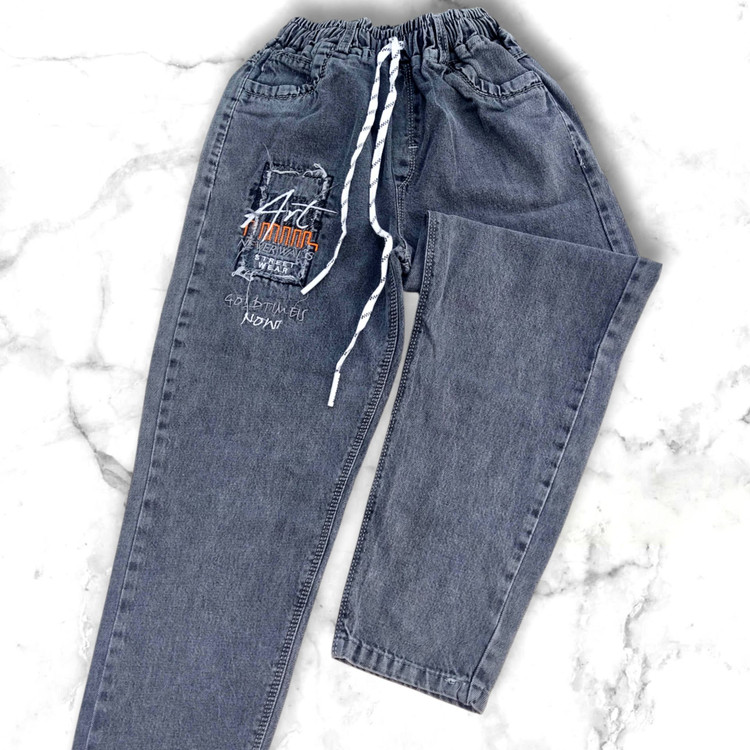 شلوار لی مام فیت دلتا رنگ طوسی گلدوزی شده سایز 90