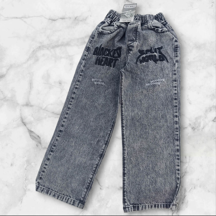 شلوار لی بگ زغالی گلدوزی شده سایز 70